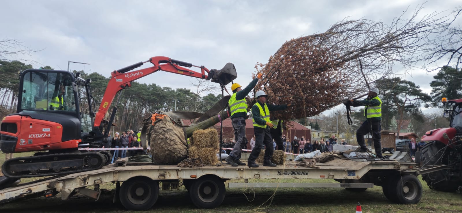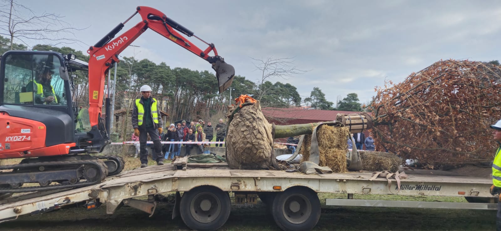 Około 40-letni buk sprowadzony z Holandii może osiągnąć nawet 26 metrów wysokości. Sadzenie tak dużego drzewa to niezwykle skomplikowany proces, wymagający specjalistycznego sprzętu oraz precyzyjnego przygotowania podłoża. Tej wielkości drzewa sadzi się niezwykle rzadko, głównie w parkach historycznych i ogrodach botanicznych, gdzie stanowią one ważny element krajobrazu i dziedzictwa przyrodniczego.
