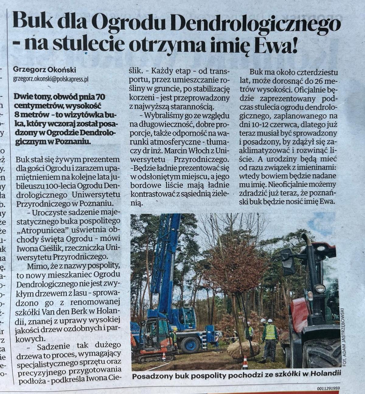 Z okazji jubileuszu 100-lecia Ogrodu Dendrologicznego Uniwersytetu Przyrodniczego w Poznaniu ogrodnicy z GARTE'amu posadzili buka pospolitego ‘Atropunicea’.